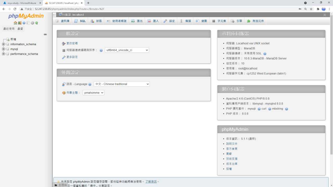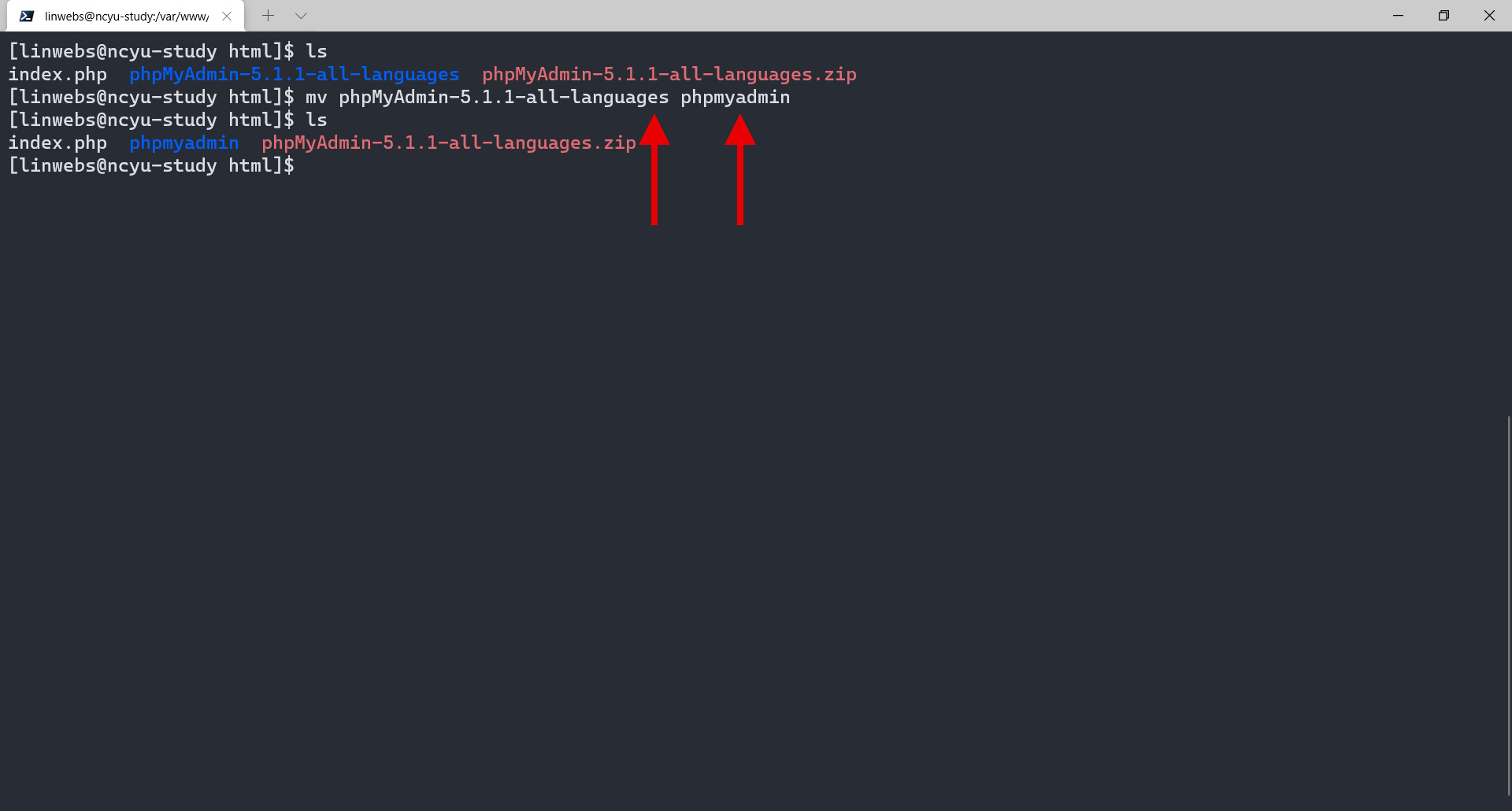 $ mv phpMyAdmin-5.1.1-all-languages phpmyadmin # 將檔案重新命名