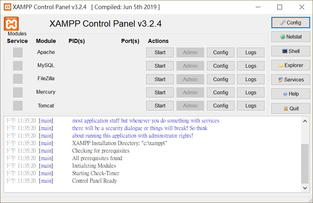 接下來可繼續閱讀【在Windows作業系統架設LAMP伺服器 - (2)XAMPP設定修改】將 XAMPP 進行調整,讓 XAMPP 更符合我們的需求。