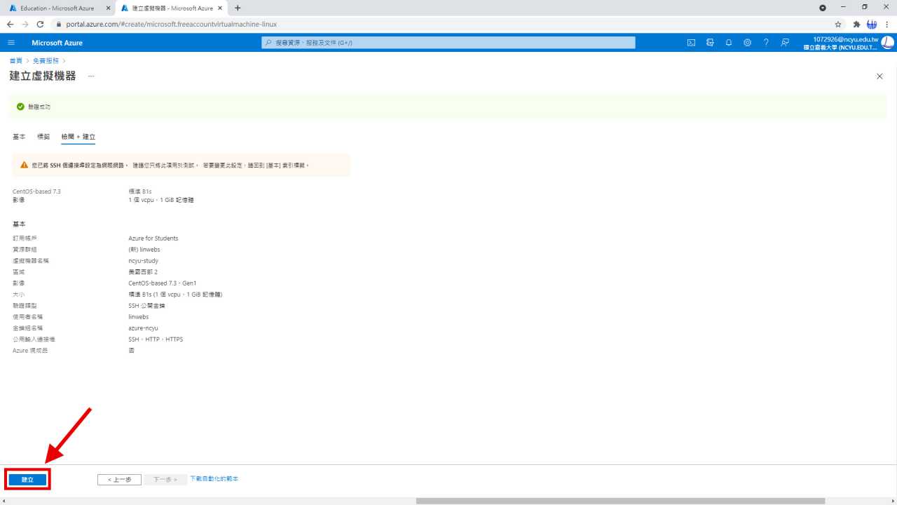 恭喜您已成功於 azure 平台建立虛擬機器,接下來可閱讀下一篇文章【虛擬化系統佈署 - 在 CentOS 7 安裝 LAMP 環境】。